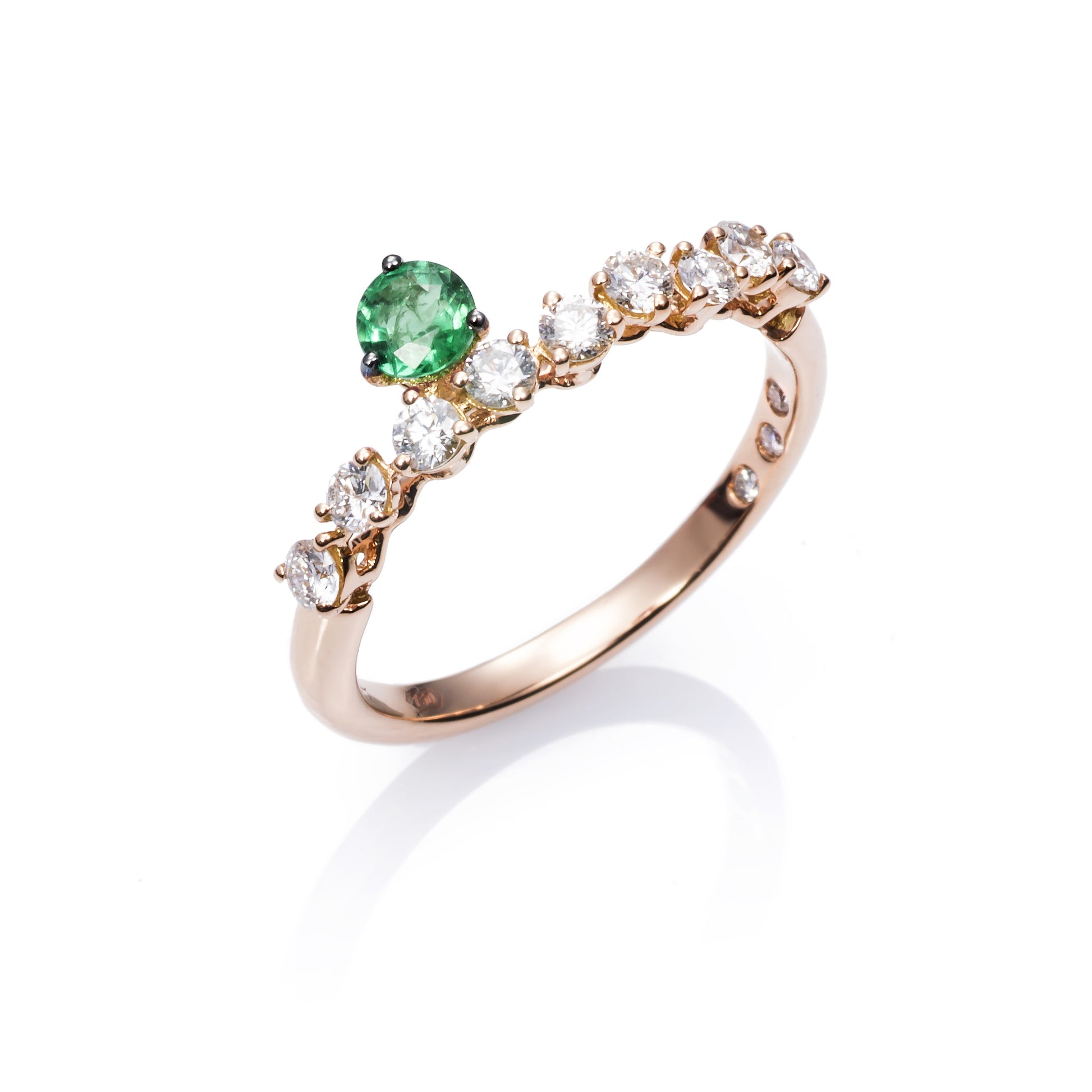 Anillo Más de mi de oro 18K con diamante y esmeralda