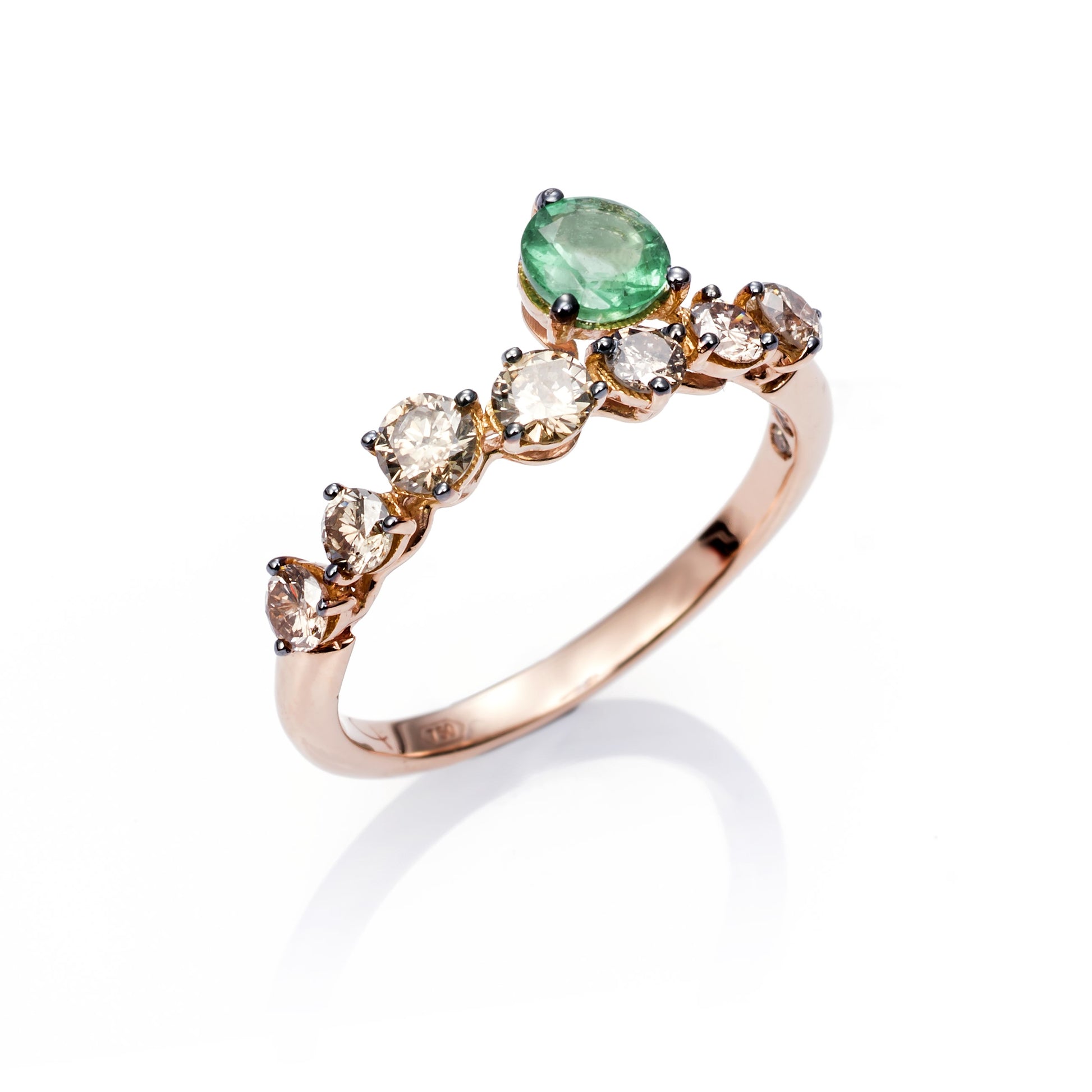 Anillo Más de mi de oro 18K con esmeralda y diamante brown