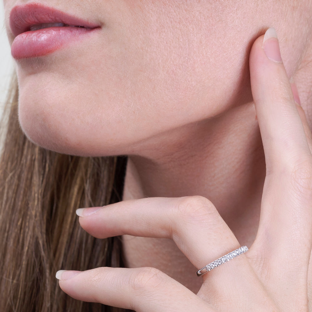 Anillo estilo media alianza de oro blanco de 18 kilates y 13 diamantes:
