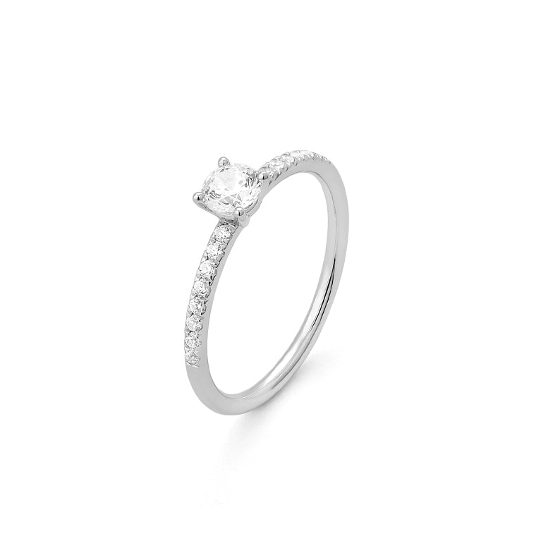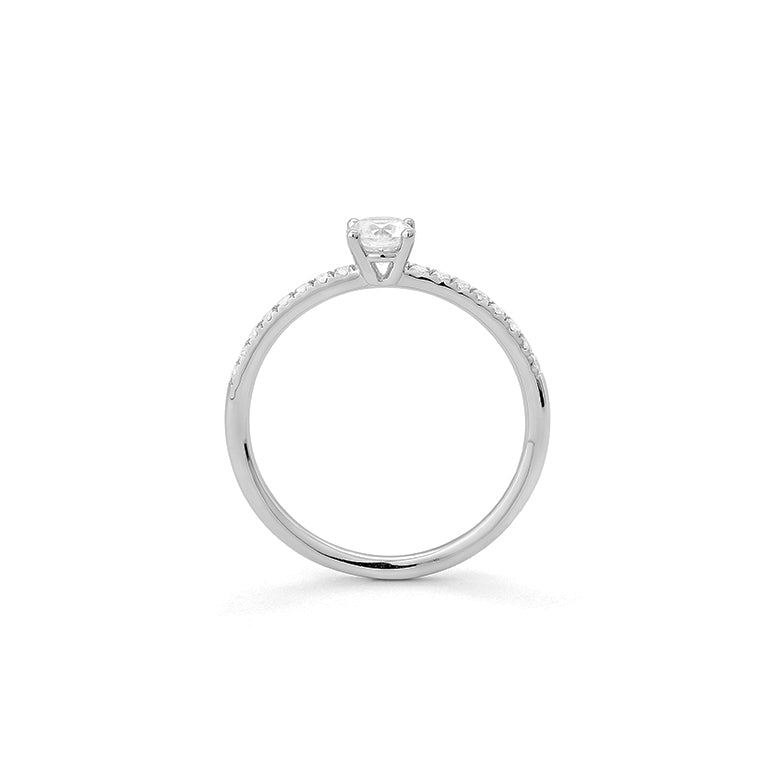 Solitario con acompañamiento fabricado en oro blanco 18 kilates o platino (a tu elección) con diamantes certificado GIA y Trazabilidad.