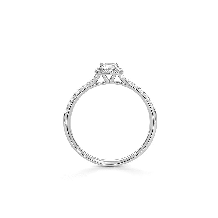 Solitario con orla y acompañamiento fabricado en oro blanco 18 kilates o platino (a tu elección) con diamantes certificado GIA y Trazabilidad.