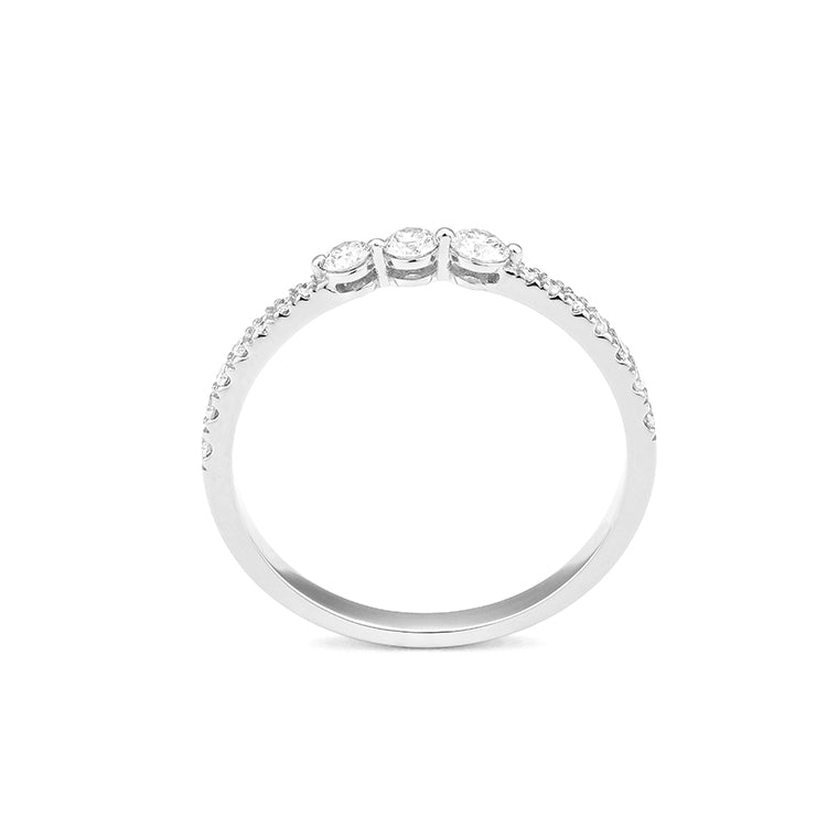 Anillo tipo tresillo fabricado en el metal de tu preferencia (Oro blanco 18K o Platino), con diamantes.